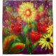 Blume Blume Abstrakt Art Rot Gelb Duschvorhang