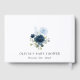 Fügen Sie Ihrer Babydusche mit diesen stilvollen und unvergesslichen Party eine persönliche Touch hinzu! Das Design umfasst marineblau-blaue Aquarellfarben, Blume im Grünen und goldene Rahmen auf weißem Hintergrund.