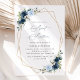 Mit dieser charmanten Geburtstagseinladung laden Sie Freunde und Familie in Stil und Set ein. Das Design umfasst marineblau-blaue Aquarellfarben, Blume im Grünen und goldene Rahmen auf weißem Hintergrund.