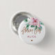 Glam eleganter, mit Blumen geschmückter Hochzeitsknopf mit Glitzer aus Kupfer, handschriftlich wie Typografie-Drehbuch, rosa Magnolienblättern, minzgrünen Eukalyptus-Blätter und einem kleinen Herz. ++++++++ Einfach mit dem Namen des Blume Mädchens personalisieren. +++++++++++ Geeignet für die Sommermonate trendige moderne Hochzeitssommer-Brautpartys.