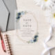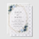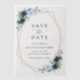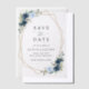 Mit dieser bezaubernden Save the Date Karte laden Sie Freunde und Familie in Stil und Set ein. Das Design umfasst marineblau-blaue Aquarellfarben, Blume im Grünen und Goldrahmen.