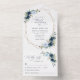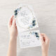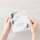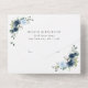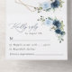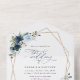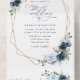 Mit dieser charmanten Hochzeitseinladung laden Sie Freunde und Familie in Stil und Set ein. Das Design umfasst marineblau-blaue Aquarellfarben, Blume im Grünen und goldene Rahmen auf weißem Hintergrund.