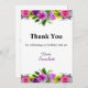 Dieses elegante Blumengeschenk-Dankeschön-Karte ist perfekt für einen modernen Sommer Blumengeburtstag. Das romantische Design besticht durch farbenfrohe Aquarellfarben mit eleganter Schwarz-lila Typografie auf weißem Hintergrund.
