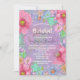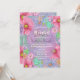 Diese Bridal-Dusche-Einladung ist eine reizvolle Mischung aus Eleganz und Lebendigkeit, um den fröhlichen Geist des Ereignisses zu erfassen. Der Hintergrund ist mit einem aufwändigen Muster blühender Blume in rosa, lila und grün gehalten, was ein Gartenambiente schafft. Der Text, elegant inmitten der blumengeschmückten Pracht positioniert, bietet sowohl ästhetisches Vergnügen als auch grundlegende Information. Diese Einladung ist eine perfekte Mischung aus Information und Kunst und macht sie zu einem unvergesslichen ersten Eindruck des kommenden freudigen Ereignisses.