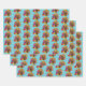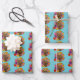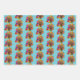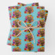 Eine Eule, die in einem Blumenstrauß mit bunten Blume in blauer Umgebung sitzt.