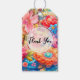 Vielen Dank Geschenkmarken mit einer farbenfrohen Sammlung von Frühling und Sommer Blume. Rosa Orange und Blau dominieren das Farbschema. Helle und mutige Blumenarrangements strahlen Glück aus. :