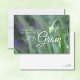 Eine Blume vor grünem Hintergrund mit dem Sprichwort "Danke, dass du mir beim Wachsen geholfen hast" zeigt eine Wertschätzung für die Lehrer, Busfahrer, Schulleiter, Krankenschwester, Berater, Trainer, Lehrer, Clubberater und die vielen anderen, die sie während ihres Schultages und weit darüber hinaus begleiten. Auf der Rückseite ist ein kleines dunkelgrünes Blumendekor, das ein wenig Farbe verleiht und gleichzeitig einen großen Leerbereich für Ihre persönliche Dankeschön bewahrt. Foto und Design von Amanda Renee, CtrlZ Digital Designs