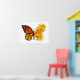 Orangefarbener, detaillierter Monarchen-Schmetterling mit einem Flügel mit gelbem, lebendigen kalifornischen Mohn auf weißem Hintergrund.