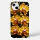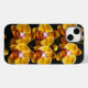 Gelbe Orchideen, insbesondere eine Gruppe von Phalaenopsis Orchideen. Die Blume zeichnen sich durch ihre aufwändigen Blütenmuster aus. Gelb- und Orangetöne sorgen für ein lebendiges Erscheinungsbild. Jede Blume hat einen zentralen Teil, der mit einem zarten rosa Farbton glänzt und ihre Schönheit vor einem dunklen Hintergrund verstärkt. Der Stamm der Orchidee ist mit mehreren Knospen geschmückt, was darauf hindeutet, dass noch mehr Blüten geöffnet sind. Die Gesamtkomposition hebt die Eleganz und Komplexität dieser Blume hervor und macht sie zu einer visuell angenehmen Einrichtung.