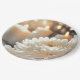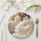 Im Vordergrund werden nahe, weiße Chrysanthemum-Blume sichtbar angezeigt, sanft glühende Kerzen im Hintergrund verschwommen, was ein warmes und ruhiges Ambiente schafft