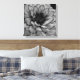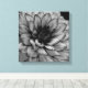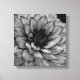 Ein Schwarzweißbild einer Dahlia-Blume auf einer Leinwand.