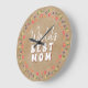 Blume der besten Mama der Welt in rustikaler Beige Große Wanduhr