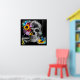 Original digitale Malerei und schwarzer Hintergrund. Realistischer menschlicher Schädel in grauem Maßstab, farbenfrohe wilde Blume und Schmetterlinge, die aus der Augenhöhle wachsen. Aquarellfarbe Spritzer. Gelbe Sonnenblumen, rosa und lila Gänseblumen und rote Mohnblumen. Modernes Design des Zuckerschädels. Ideal zu Halloween oder für diejenigen, die einen Hauch von Gotik Liebe.