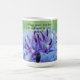 Auf der Vorderseite dieser Tasse befindet sich eine wunderschöne blaue Bachelor's Button-Blume mit Schrift vom 1:2.