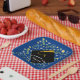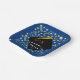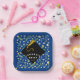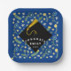 Teller der niedlich Graduation Party mit klassischen Schwarz/Gold-Graduierungsmützen und Tassel sowie blauen, gelben und weißen Blume. Um personalisieren und den Namen und die Senior-Klasse Jahr.