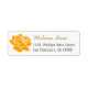 Ihr eigener Name und zusätzliche Informationen mit dem Bild einer grafischen orangefarbenen Rose-Blume auf einem stilvollen schwarzen Adressetikett... für elegante Frauen.