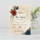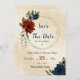 Einzigartige Save the Date Karte mit romantisch gebrannten orangen und marineblauen Blumen und grünen Blätter. FÜR WEITERE PRODUKTE klicken Sie auf die Sammlung oben oder kontaktieren Sie mich.