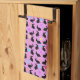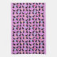 Dieses Küchenhandtuch ist rosa mit einer Gruppe sitzender Frühlingskaninchen, die farbenfrohe Blume um ihren Hals tragen, mit einer Sprinklerei verschiedener farbiger Blume-Blätter.