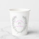 Personalisieren Sie diese Bridal duschenden Party Papiertassen mit Ihrem eigenen Namen und Brautparty Datum. Hübsches Rosa und Grün zeichnend mit Aquarell-Waschbecken Thymian Kräuterkranz-Design. © Original zeichn- und Aquarellfarbe Malerei und Design von Sarah Trett für www.mylittleedenweddings.com