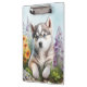 Blume der Wasserfarbe und des sibirischen Husky Klemmbrett