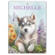 Schönes sibirisches Husky-Design mit gelben und violetten Blumen