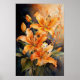 Dieses Kunstwerk zeichnet die kurzlebige Schönheit blühender Lilien auf, die durch eine meisterhafte Mischung von warmen Farbtönen und einer kontrastierenden dunklen Kulisse geprägt ist. Der Künstler setzt geschickt ein zartes Licht- und Schattengleichgewicht ein, um ein Gefühl zeitloser Eleganz und ruhiger Majestät zu wecken. Dieses Stück eignet sich am besten für: ・ ein modernes Wohnzimmer mit minimalistischer Dekoration, in dem die lebhaften Farben zum Mittelpunkt werden können. ・ Ein eleganter Büroraum, um Kreativität und Ruhe inspirieren. ・ Eine gemütliche Leseecke, um Elemente der Natur und Wärme zu bringen.