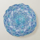 Blume des Lebens in Lotus - Aquarellblau Rundes Kissen