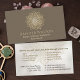 Dieses elegante Visitenkartendesign beinhaltet die zeitlose Blume des Lebenszeichens, die die Verbundenheit des Lebens, die heilige Geometrie und die universelle Energie darstellt. In den Blütenblättern eines Lotus, einem Symbol der Reinheit, des spirituellen Erwachens und der Erleuchtung gefangen, strahlt dieses Design Harmonie und Ausgewogenheit aus. Die Kombination dieser leistungsstarken Symbole macht dieses Design ideal für Profis aus ganzheitlichen und spirituellen Bereichen, darunter: Reiki Practitioner und Energiehelfer, Kristallheilexperten, Yoga-Instruktoren und Meditationslehrer, Astrologen, Tarot-Leser, Soundtherapeuten und Heilpraktiker, Heilkraut- und Naturheiler, Holistische Therapeuten, Wellness-Center- und Wellness-Fachkräfte. Dieses vielseitige und aussagekräftige Design bietet eine berufliche und zugleich seelenvolle Ästhetik, die sich perfekt für Branding-Dienstleistungen eignet, die Heilung, Gleichgewicht und Transformation inspiriere.