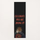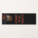 Eine schwarze Yoga-Matte mit rot-orangefarbenem Text, die lautet: "Feiern Sie, Sie machen es!", auf einem Foto von farbenfrohen Feuerwerken.