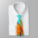 Große Blumenhals Krawatte mit Orangenvogel paradiesischer Blume über ein Aqua-Blau-Hintergrund-Design. Ideal für eine hawaiianische Hochzeit oder Sommerveranstaltung. Der grüne und blaue Stamm und die leuchtend orangefarbene Blume sind vorne bedruckt, aber nur teilweise sichtbar. Der Rest der Krawatte ist in einem hellen Aqua-Aqua-Ambiente gehalten.