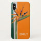 Auf Orange mit grünem Streifen Nah von wunderschönem Paradiesvogel. Der Name kann bearbeitet werden.