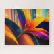 Fett gewachsenes und helles tropisches Rätsel mit Blumen und Sonnenuntergang am Strand | AI schuf surreale Fantasie digitale Kunst.