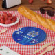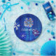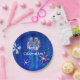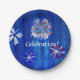 zeichnend Blume, blauer Hintergrund, goldene Punkte. Sommerzeit. Jegliche Anlässe.Happy Feier Papier Teller.