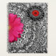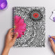 Ein schöner Planer mit handgezeichneten Doodle-Kunstmustern und hellrosa und roten Blume.