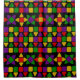 Dieser Duschvorhang hat ein Schwarzes Geschichtsbild von Blume und Reihen aus Dreiecken und Rechtecken.