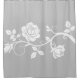 Duschvorhang in einer soliden Grau-Farbe mit weißer Blume. Passen Sie dieses Objekt an oder kaufen Sie, wie es ist.