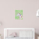 Hübsches weißes Einhorn mit Blume in seiner Mane auf grünem Hintergrund, auf diesem Kunstposter.
