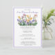 Personalisieren Sie diese Blume-Austauscheinladung mit Ihrem Text. Wählen Sie einen Schriftart und die Textfarbe aus, die Ihre Gartenveranstaltung ergänzen würde. Diese Einladung enthält eine Aquarellbilder für lila Iris-Blume in Gelb und Rosa