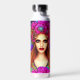 Das ist eine wunderschöne Wasserflasche mit einer Blume-Märchenkönigin in lebhaften Farben wie Rosa, Pfeffer und Blues.