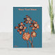 Ein leicht stilisiertes, braunes und orangefarbenes Bild von fünf Blume aus Kuchenkegeln auf neutralem blauen Hintergrund. Fügen Sie Ihren eigenen Text hinzu.