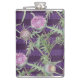 Wasserfarbe auf Papier.Künstler von Zolotareva.Prickly-Siegel. Die Blätter sind stachelig, die Ausstattung, die Blume in den Korbkörben sind farbenfroh, violett. Das Wahrzeichen Schottlands. Die Blume einer Aquarellfarbe auf einem grafischen violetten Hintergrund des Computers.