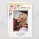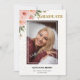 Die Einladung zur Graduiertenparty beinhaltet rosafarbene Blume, Foto des Absolventen, Name, Schulname und Abschluss Jahr sowie Details zur Abschlussfeier auf der Rückseite.