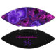 Eine Hälfte ist ein heißrosa und lila Fraktal der Blume. Der andere ist schlicht schwarz mit dem Namen und der einheitlichen Zahl in passenden Farben.