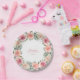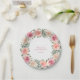 Die Babyduschplatte im Stil einer Blume ist mit Ihrem Namen und Datum versehen.