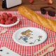 Eine Frau bekam einen Fehler von einer Blume. Dieses Design wirkt auf diese Paper-Teller sehr effektiv