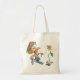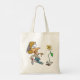 Eine Frau bekam einen Fehler von einer Blume. Dieses Design sieht auf dieser Totbeutel wirklich effektiv aus