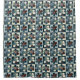 Das niedliche Ländermuster weist eine vierteilige Wiederholungsgrafik von Blume mit Patchwork-Schaltflächen in Blautönen mit komplementären Farben auf.