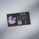 Ein schwarzer Hintergrund, weißer Text. Personalisieren Sie Ihren Namen, Titel, Telefonnummer, E-Mail- und Website-Adresse, fügen Sie Ihren eigenen QR-Code zu Ihrer Website oder Ihrem Social-Media-Konto hinzu. Lila, rosa und lila Blumen mit Schmetterling