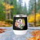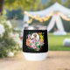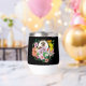 Ein niedlicher Igel inmitten farbenfroher Blume in schwarzer Umgebung