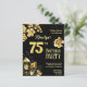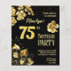 Budget Schwarz und Gold Blume Geburtstagsparty personalisiert Geburtstagseinladung.